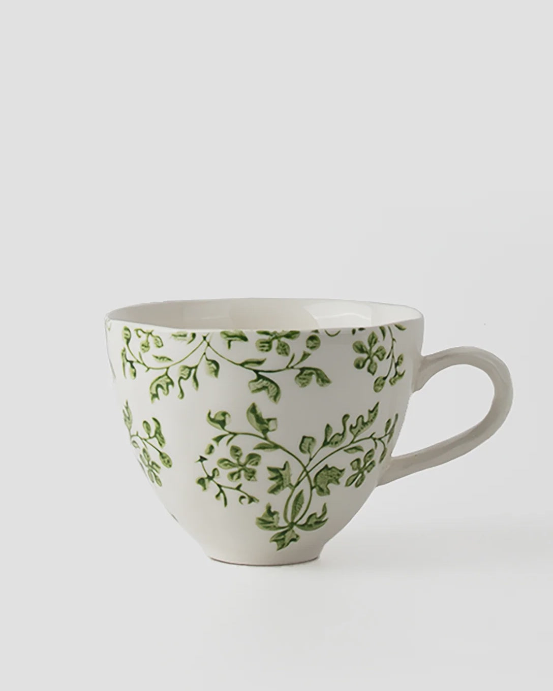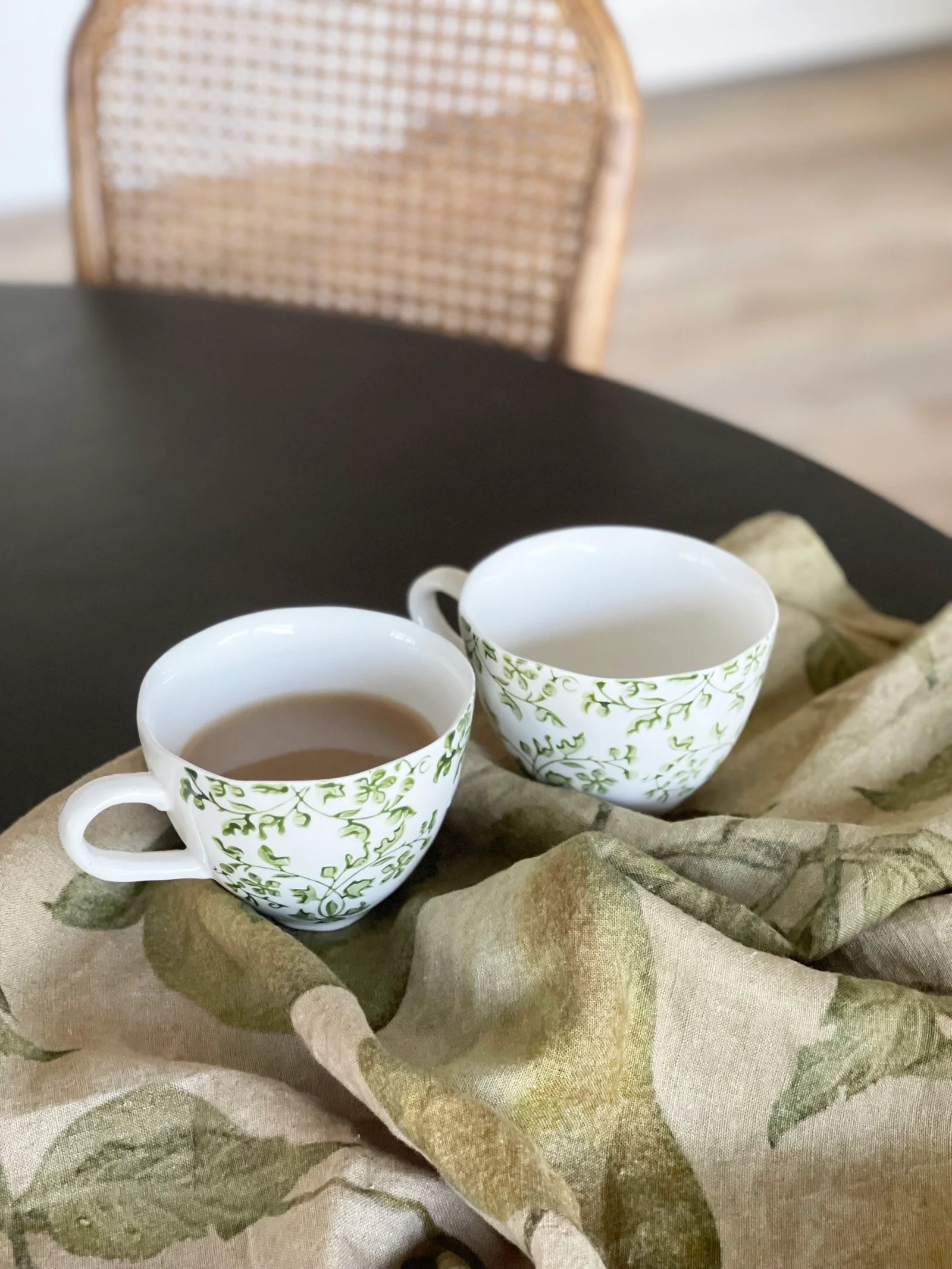 The size of this organic shaped mug makes it the perfect size for a large coffee, tea or hot chocolate. Featuring a hand painted florentine leaf pattern in black these are a truly beautiful gift