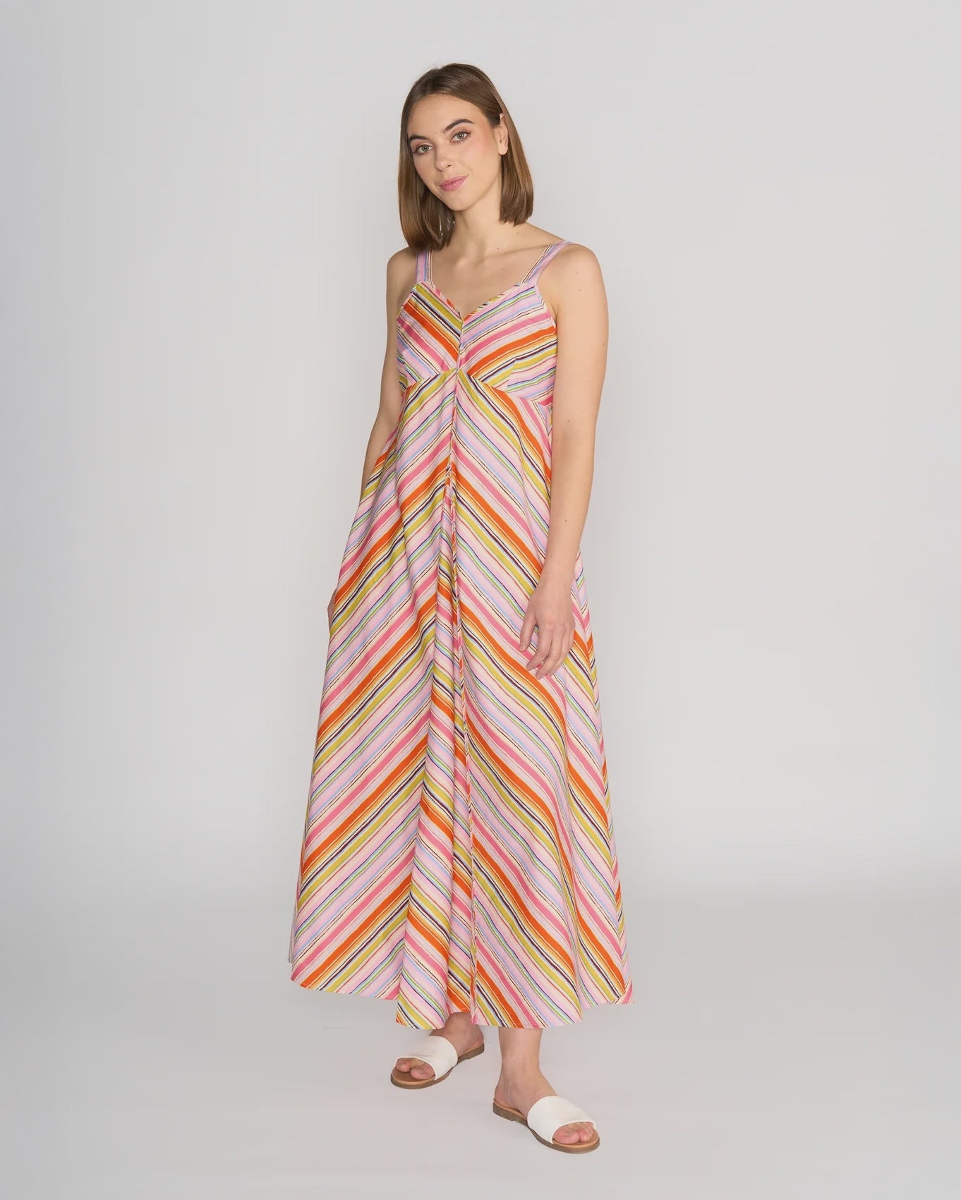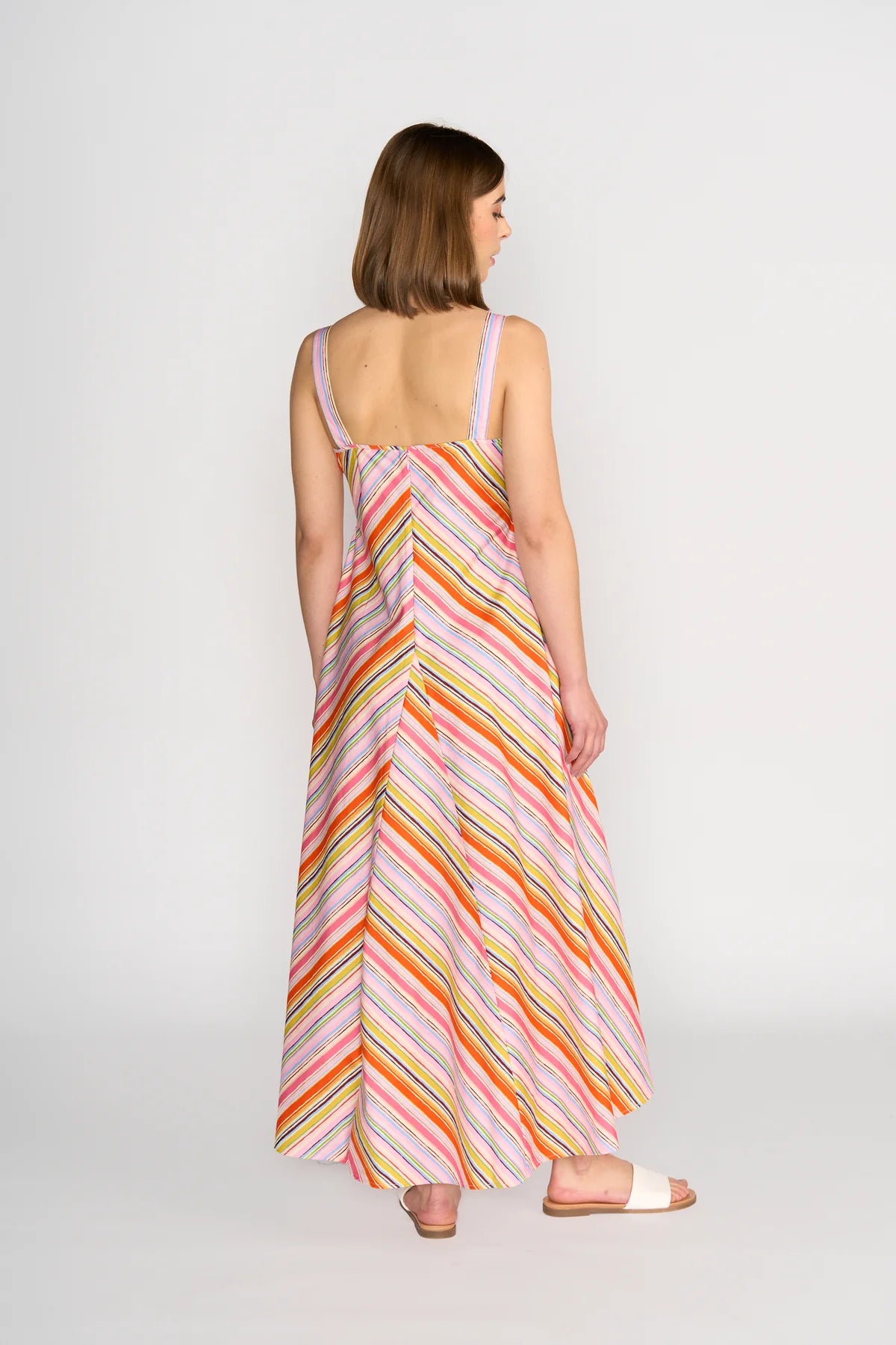 This full-length floaty summer Gala Dress is made from a lightweight cotton-nylon blend. The dress is shaped through the bust and waist and flows into a relaxed, breezy skirt, perfect for warm days and effortless style.