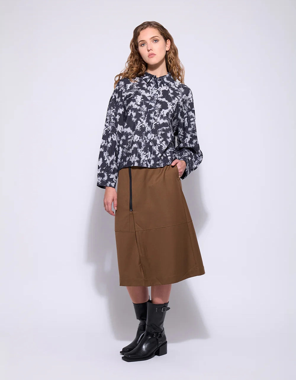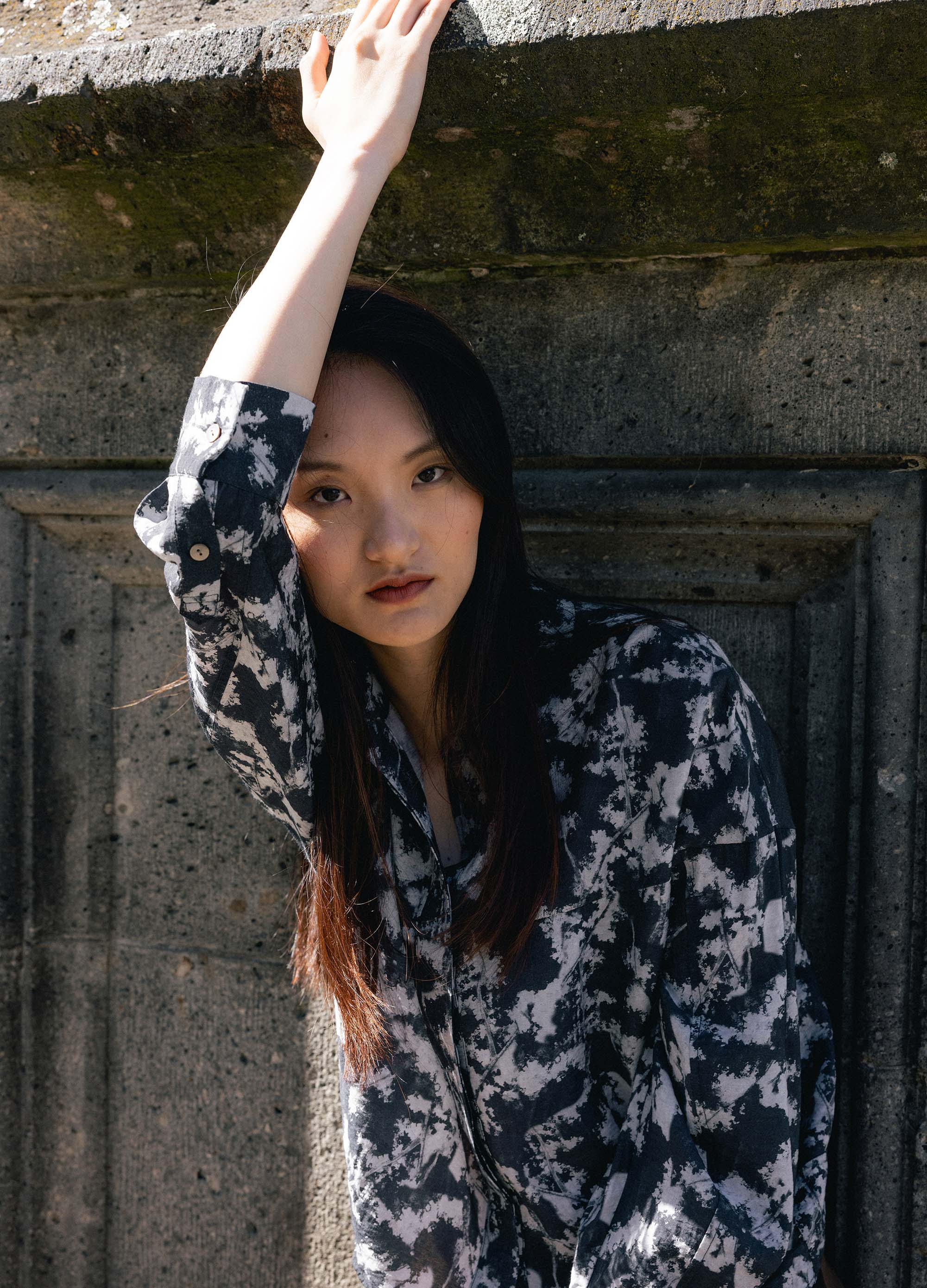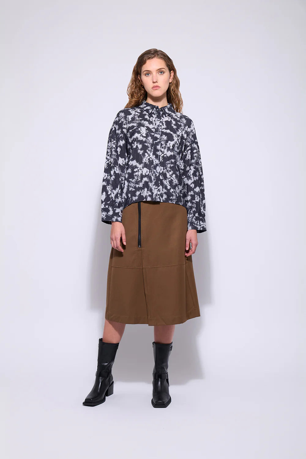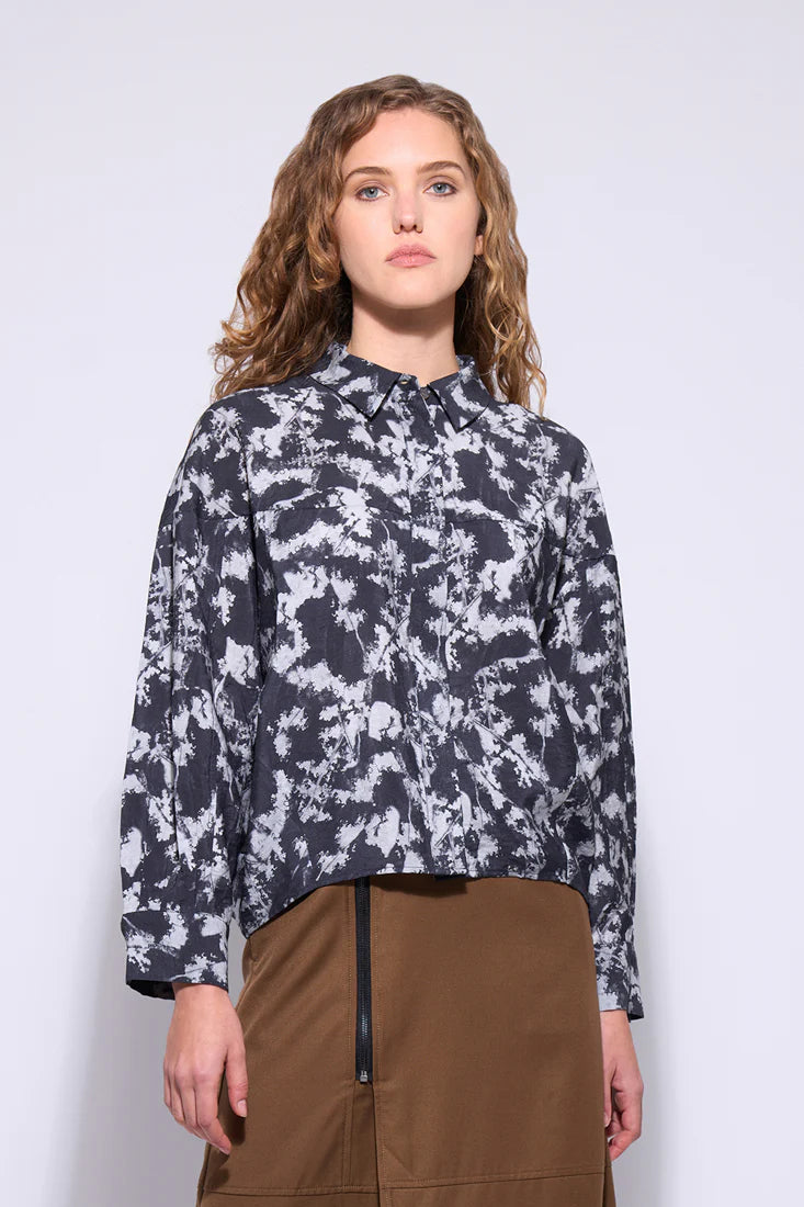 The Canopy Shirt by Neris, a relaxed-fit shirt with a minimalist design. Featuring a classic collar, button-up front with a concealed placket, and button cuffs, it's a versatile piece for workwear or casual styling.