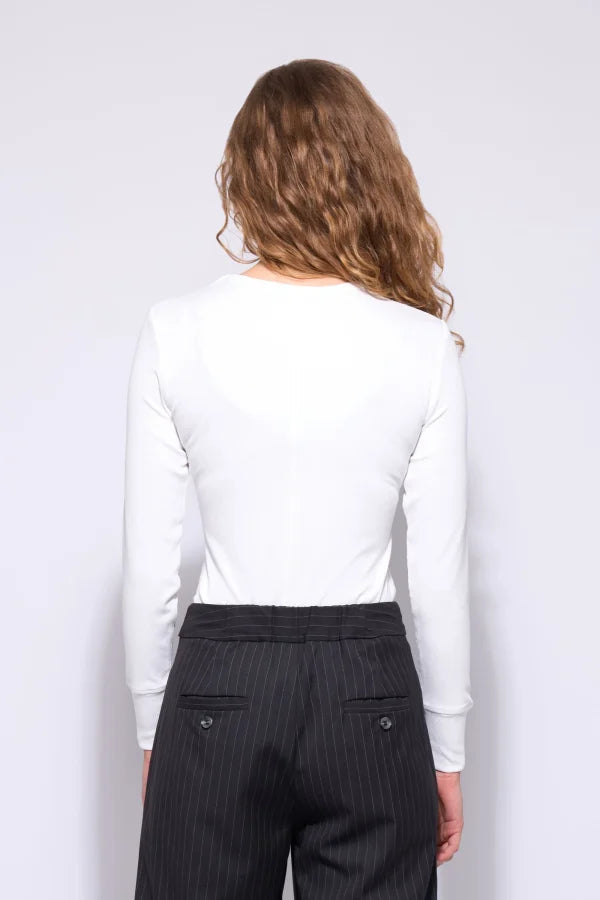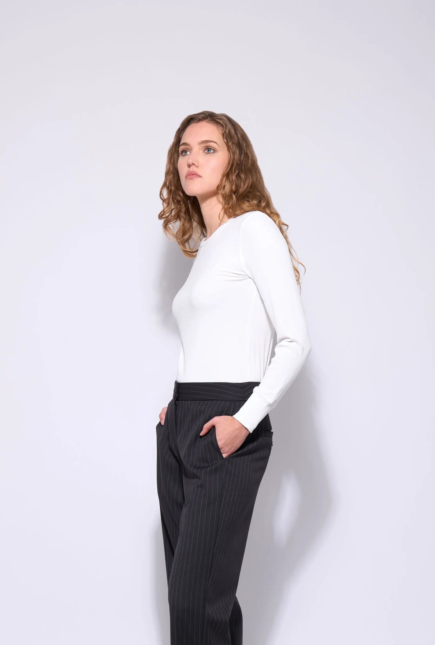 The Noah Top by Neris is an elevated wardrobe essential, this slim-fit top is made from a finely ribbed fabrication. Featuring a classic crew neck and long sleeve, ideal for pairing with trousers, skirts, or under jackets, it's a versatile piece for any season.