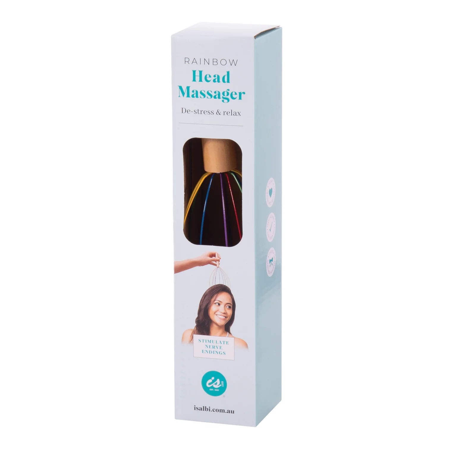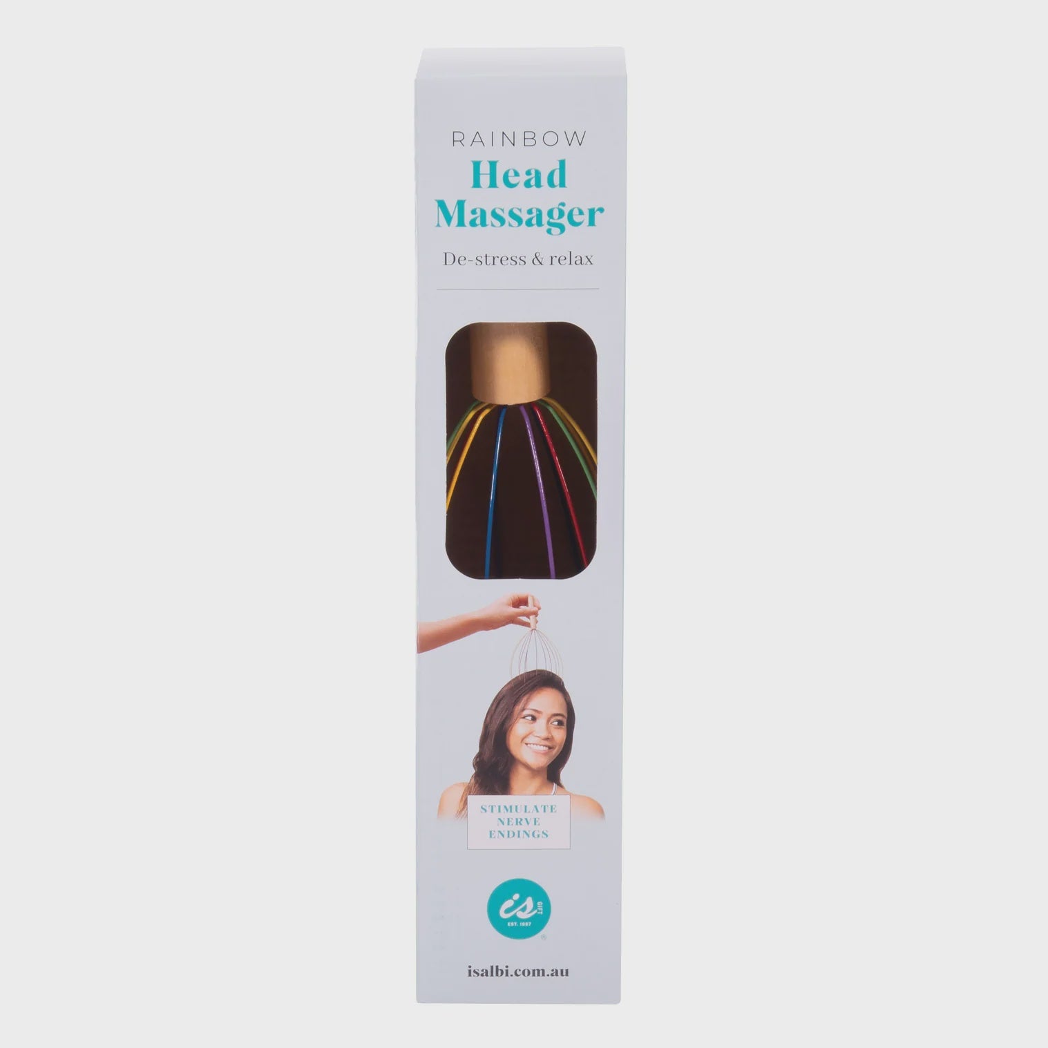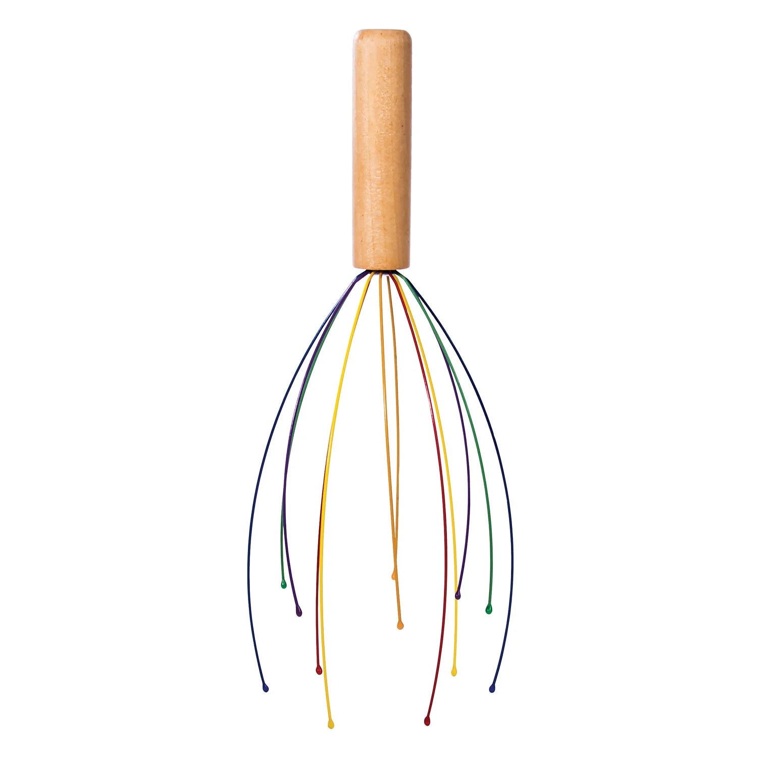 Stimulate nerve endings and acupressure points on your scalp, temples and neck and de-stress! Smooth wooden handle with cool rainbow prongs.