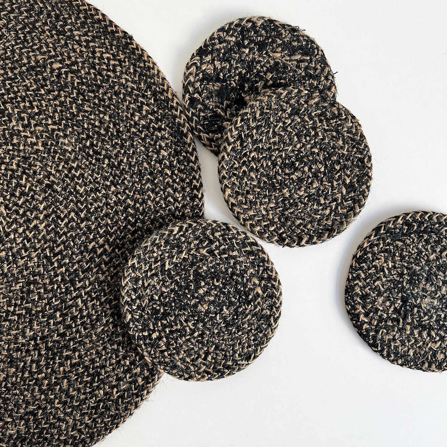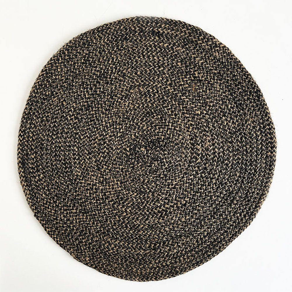 Handcrafted round seagrass natural placemat, black/natural.