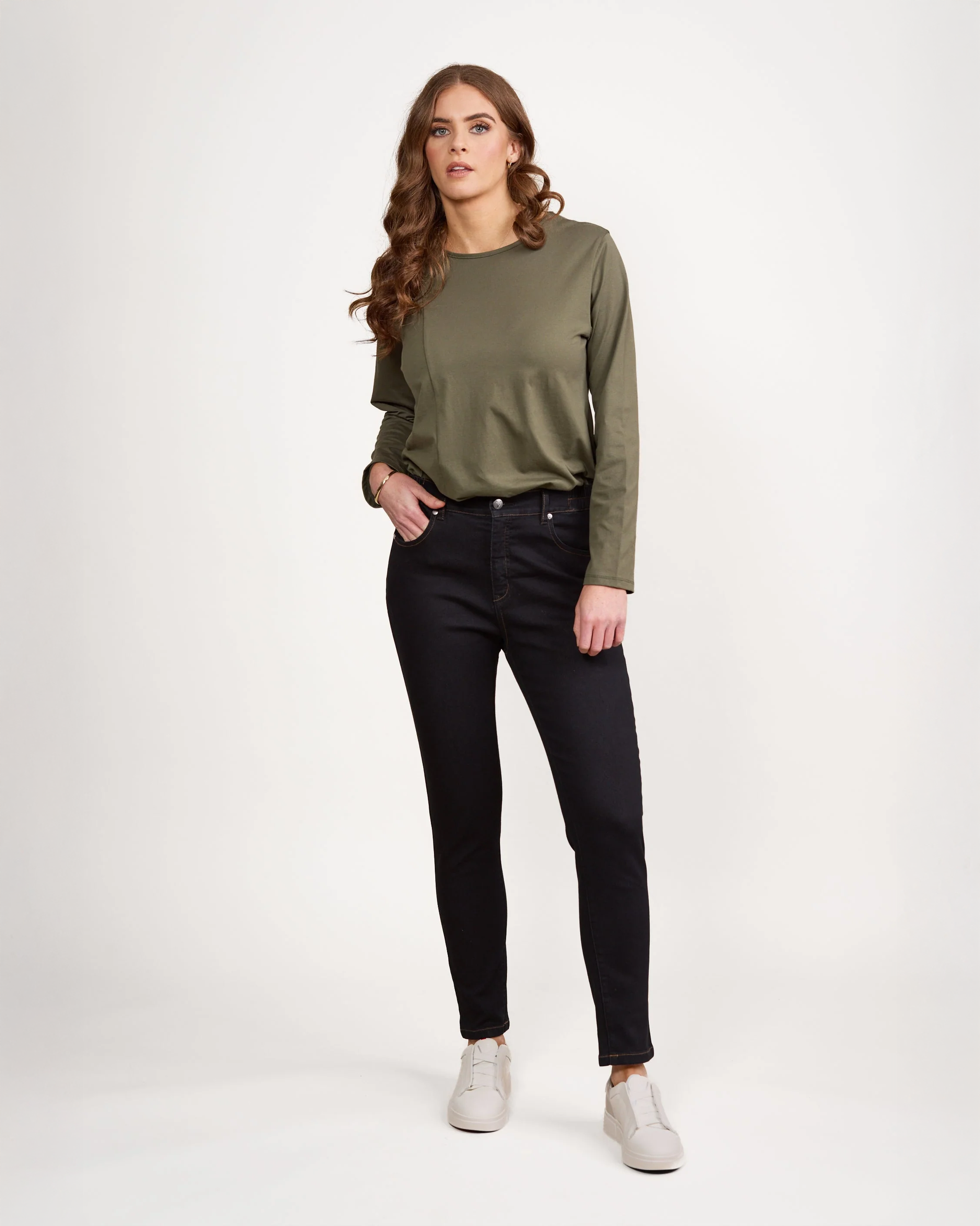 Vassalli Skinny Leg Ankle Grazer Jean with Side Waistband Elastic