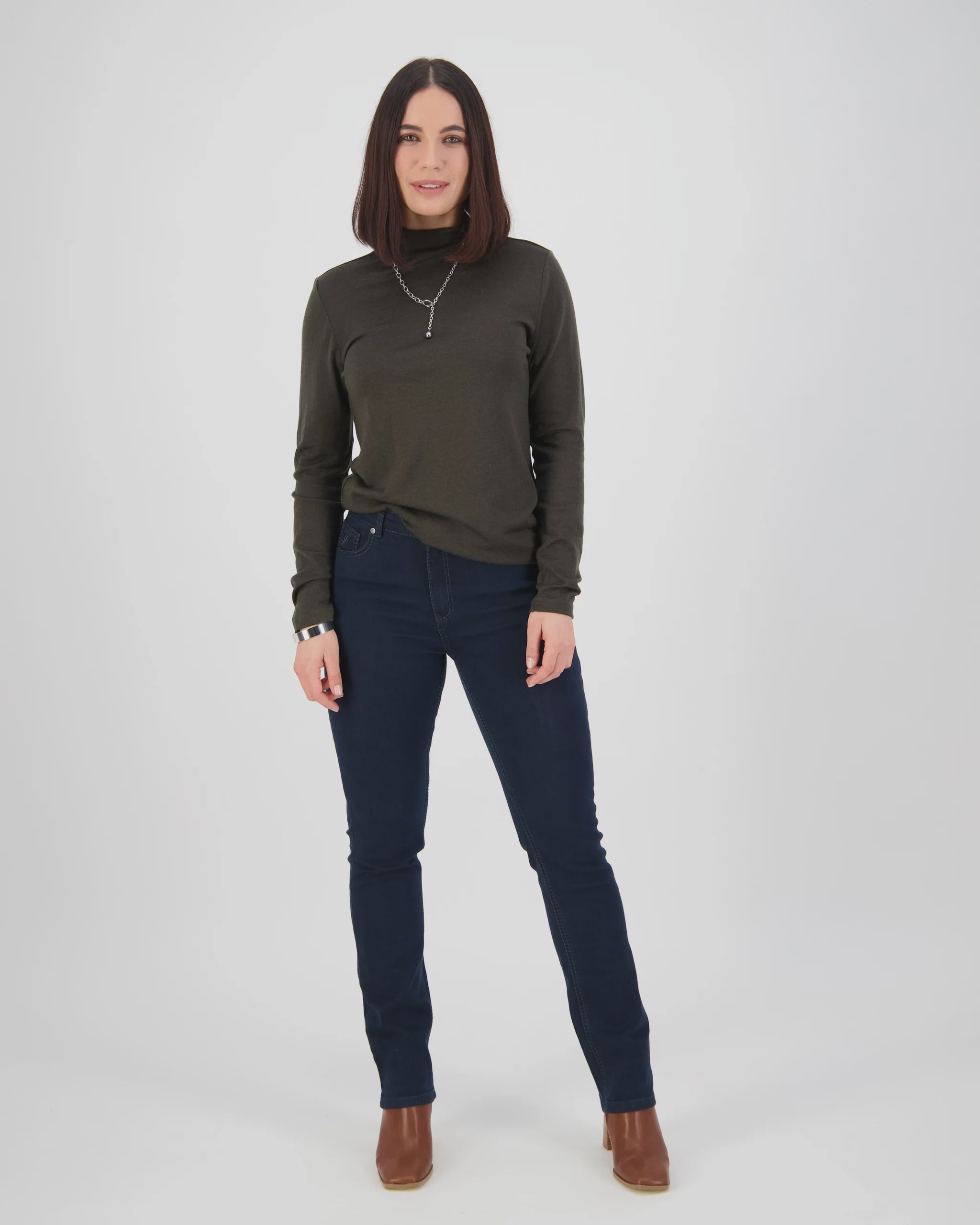 High rise slim leg jean made from stretch fabric for the perfect fit