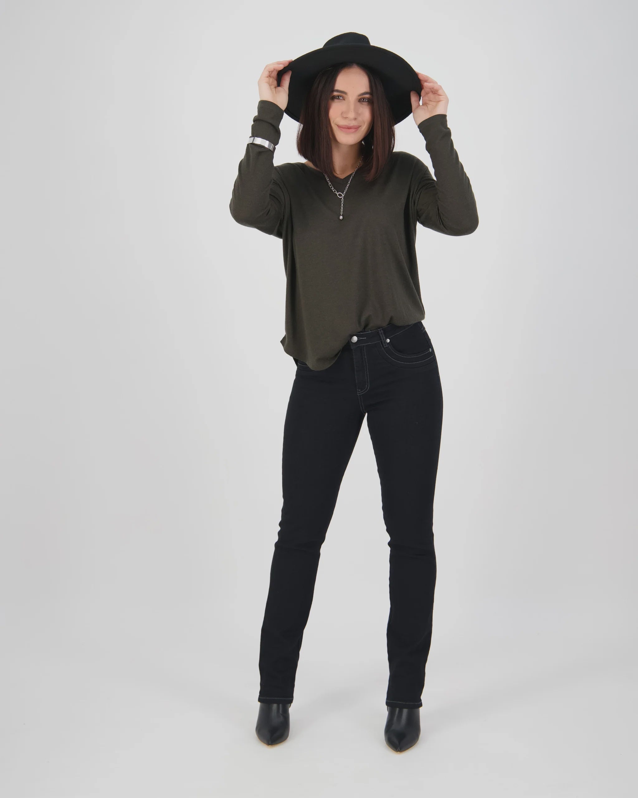 High rise slim leg jean made from stretch fabric for the perfect fit