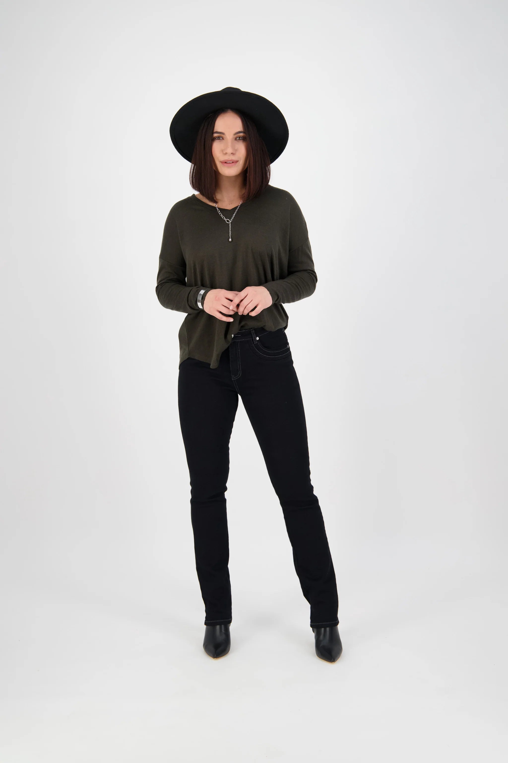 Vassalli Slim Leg Full Length Jean in Black Denim