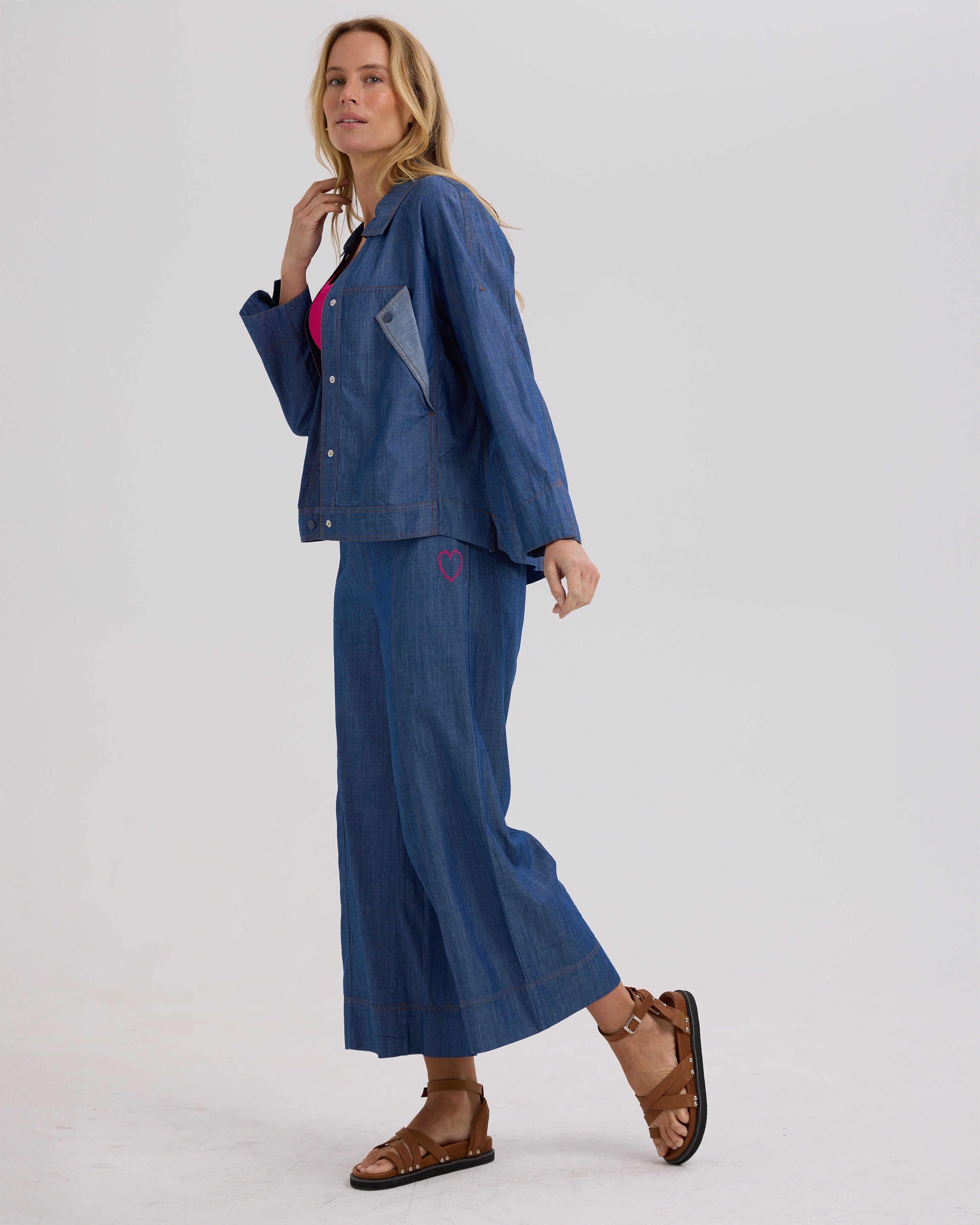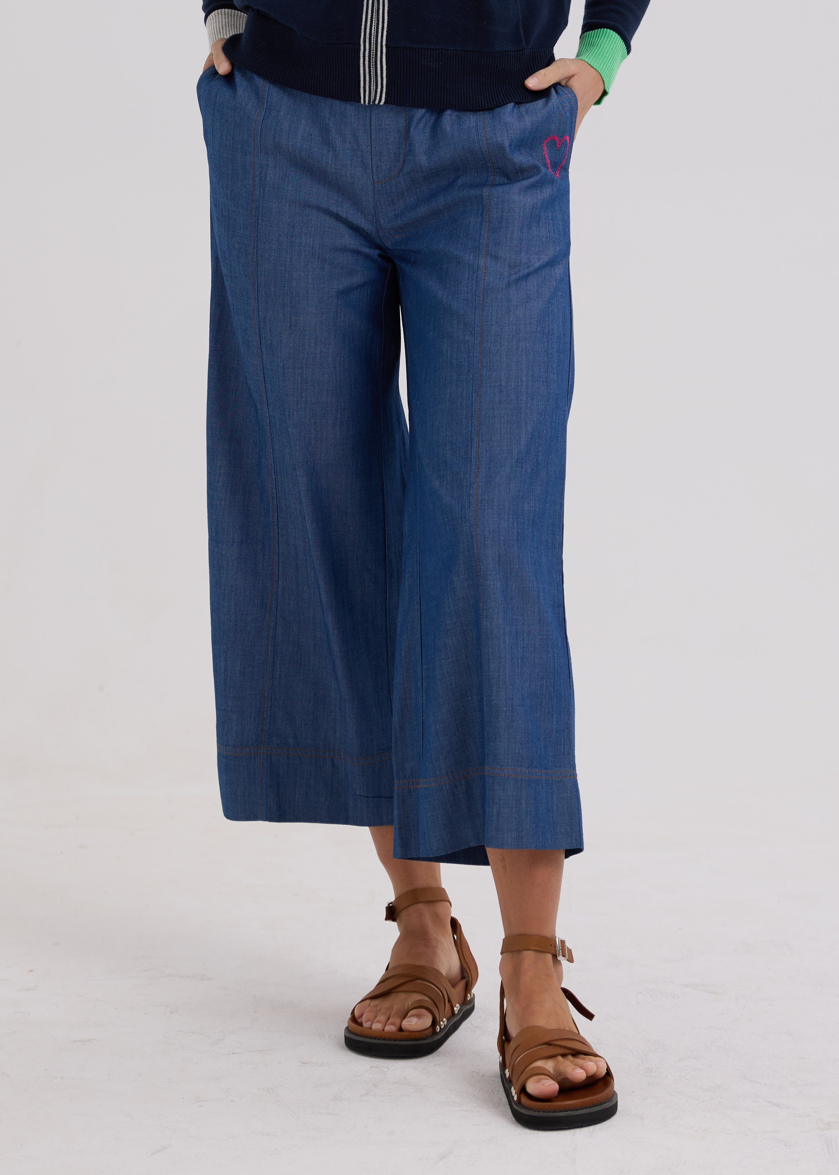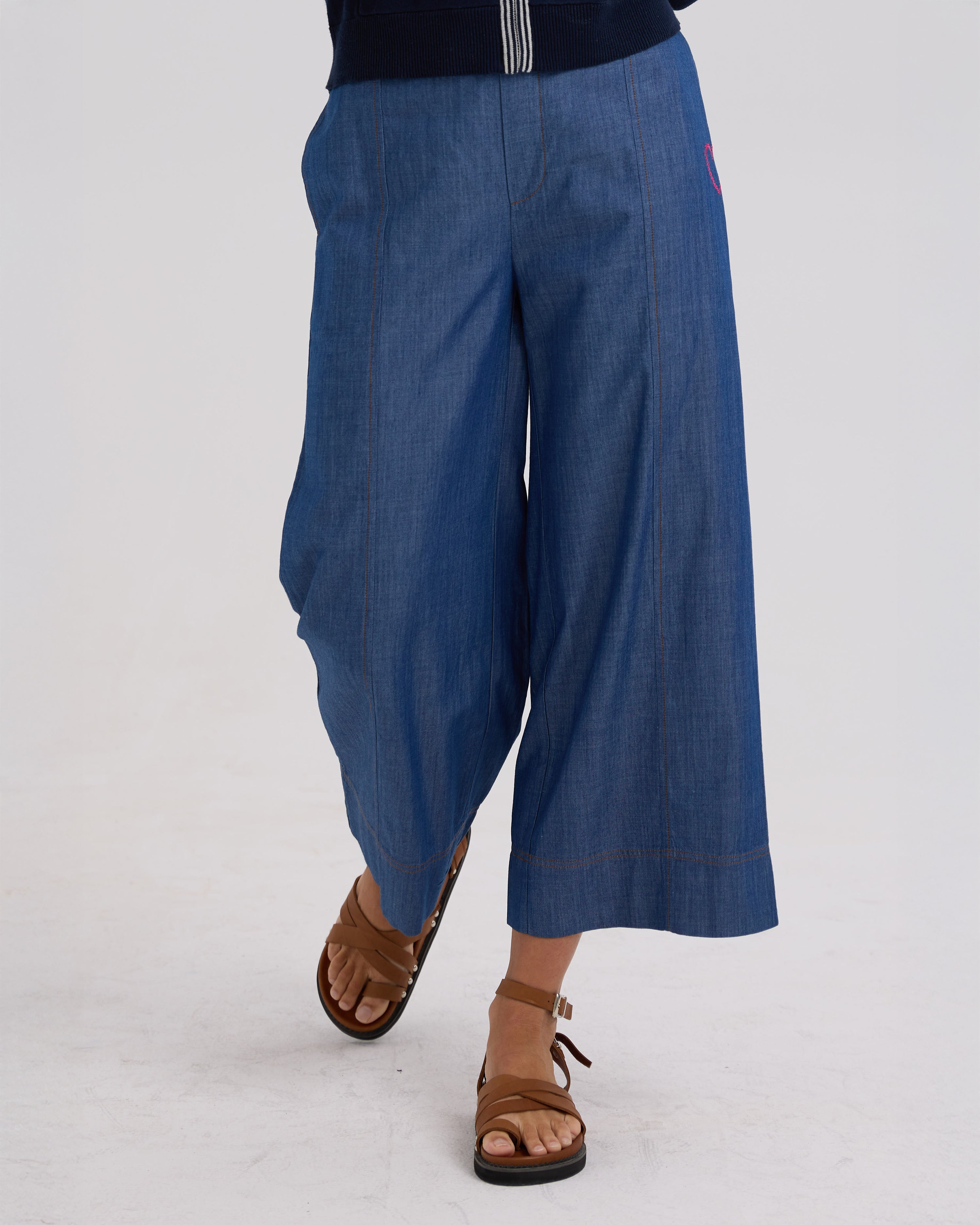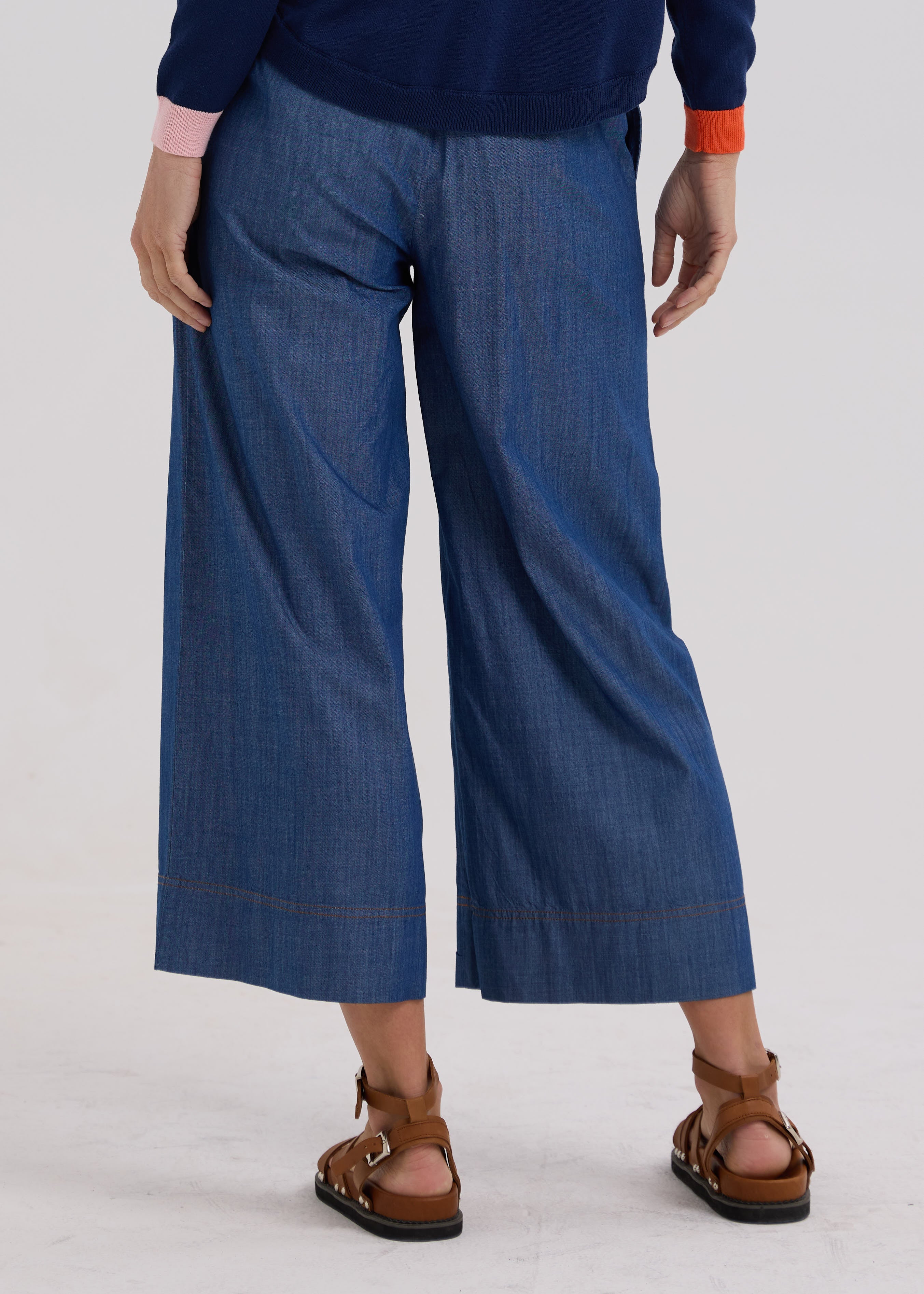The Zaket & Plover Denim Pant are a stylish, wide-leg, Cotton Tencel pant in a comfy, pull on style. Easy to wear, these lightweight pants are a great alternative to a heavier style denim pant in the warmer months.